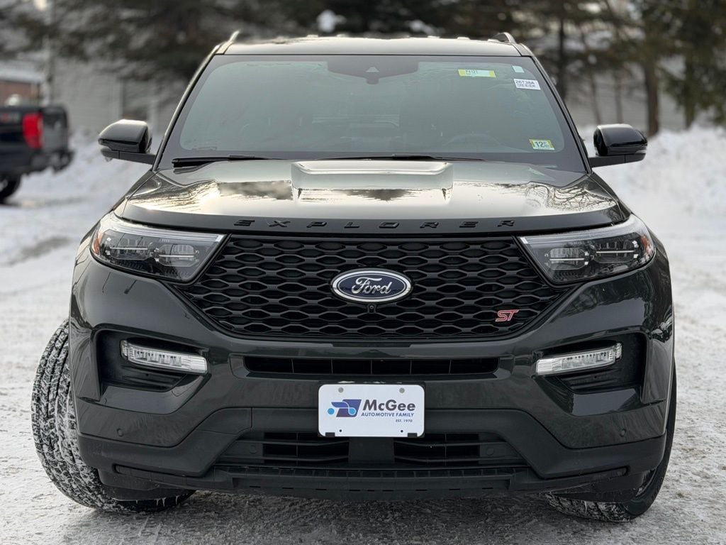 McGee Ford of Montpelier is proud to present you with another True Market Priced Pre-Owned Vehicle. This 2022 Ford Explorer ST is loaded with the following Factory Options: 4WD Equipment Group 401A, Ford Co-Pilot360 Assist+ (Evasive Steering Assist, Intelligent Adaptive Cruise Control, Speed Sign Recognition, and Voice-Activated Touchscreen Navigation System), ST High Package (110V/150W AC Power Outlet, 360-Degree Camera w/Split View, Auto-Dimming Rearview Mirror (Interior), FordPass Connect, Front Parking Sensors, Front Rain-Sensing Wipers, Hands-Free Foot-Activated Liftgate, Memory Driver's Seat, Power Tilt/Telescoping Steering Column, Radio: B&O Sound System by Bang & Olufsen, Reverse Brake Assist, Second Row Heated Seats, Sideview Mirrors w/Gloss Black Caps, SYNC 3 Communications & Entertainment System, Third Row PowerFold (Folds Flat), Universal Garage Door Opener (UGDO), and Wireless Charging Pad), ST Street Pack (Performance Front & Rear Brakes and Wheels: 21" Aluminum), Technology Package (10.1" LCD Capacitive Portrait Touchscreen and 2 Additional Speakers), 4WD, 1st Row Heated Seats, 20" Machined Aluminum w/Painted Pockets Wheels, 3.58 Non-Limited-Slip Rear Axle Ratio, 3rd row seats: bench, 4-Wheel Disc Brakes, 6 Speakers, ABS brakes, Air Conditioning, Alloy wheels, AM/FM radio: SiriusXM, AM/FM Stereo, Auto High-beam Headlights, Automatic temperature control, Black Roof-Rack Side Rails, Brake assist, Bumpers: body-color, Compass, Delay-off headlights, Driver door bin, Driver vanity mirror, Dual front impact airbags, Dual front side impact airbags, Electronic Stability Control, Emergency communication system: SYNC 3 911 Assist, Exterior Parking Camera Rear, Four wheel independent suspension, Front anti-roll bar, Front Bucket Seats, Front Center Armrest, Front dual zone A/C, Front fog lights, Front reading lights, Fully automatic headlights, Hands-Free Liftgate Delete, Heated door mirrors, Heated front seats, Heated steering wheel, Illuminated entry, Knee airbag, Leather steering wheel, Low tire pressure warning, Memory seat, Occupant sensing airbag, Outside temperature display, Overhead airbag, Overhead console, Panic alarm, Passenger door bin, Passenger vanity mirror, Power door mirrors, Power driver seat, Power Liftgate, Power passenger seat, Power steering, Power windows, Rear air conditioning, Rear anti-roll bar, Rear Auxiliary Controls Credit, Rear reading lights, Rear window defroster, Rear window wiper, Remote keyless entry, Security system, SelectShift Capability w/Paddle Shifters, Speed control, Speed-sensing steering, Speed-Sensitive Wipers, Split folding rear seat, Spoiler, Sport steering wheel, Steering wheel mounted audio controls, SYNC 3/Apple CarPlay/Android Auto, Tachometer, Telescoping steering wheel, Tilt steering wheel, Traction control, Trip computer, Variably intermittent wipers, and Ventilated front seats!!